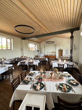 Heute bietet die Festscheune mit ihrem zeitlosen Look eine unvergleichliche Atmosphäre. Bei schönem Wetter können auf der angrenzenden Terrasse mit Blick in Richtung Murmelsee wundervolle Stunden genossen werden.